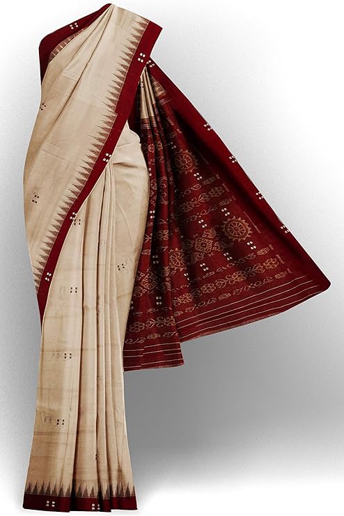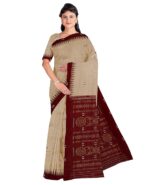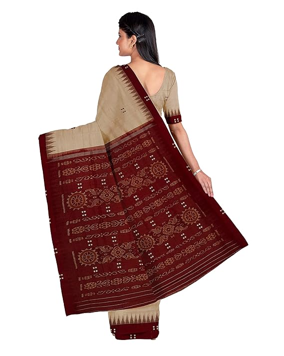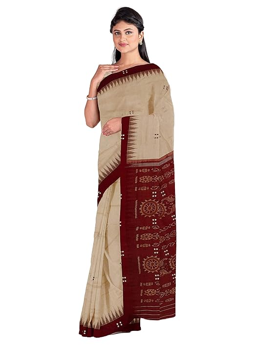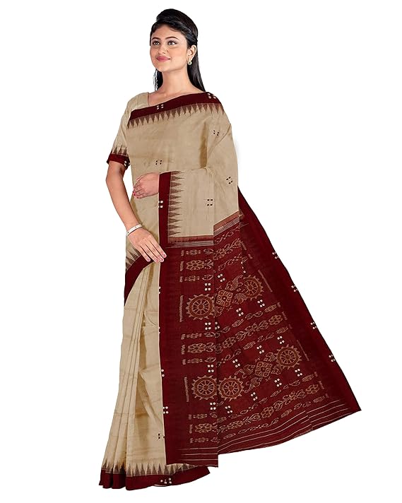 Odisha Sambalpuri Handloom Ikat Women Beige Cotton Saree, Odisha Handloom Without Blouse