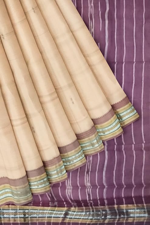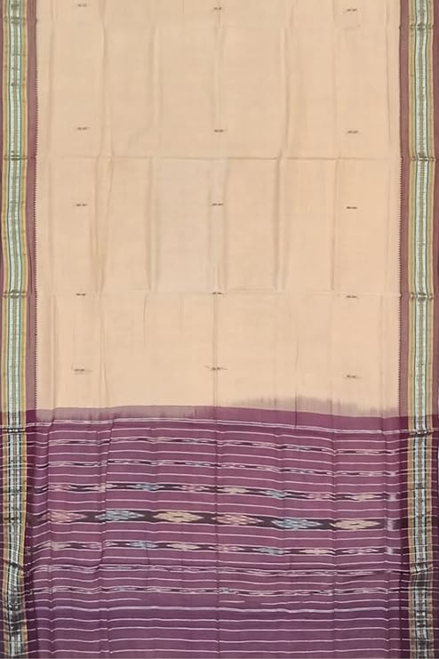 A distinctive feature of the Sambalpuri saree is the design of the border and pallu (the loose end of the saree). While the body of the saree features an intricate pattern, the border typically features bold, solid designs. The pallu, on the other hand, is often more elaborate and detailed, showcasing the most complex patterns. The pallu may feature symbols such as peacock motifs, floral vines, or geometrical designs.