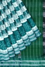 A distinctive feature of the Sambalpuri saree is the design of the border and pallu (the loose end of the saree). While the body of the saree features an intricate pattern, the border typically features bold, solid designs. The pallu, on the other hand, is often more elaborate and detailed, showcasing the most complex patterns. The pallu may feature symbols such as peacock motifs, floral vines, or geometrical designs.