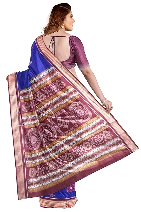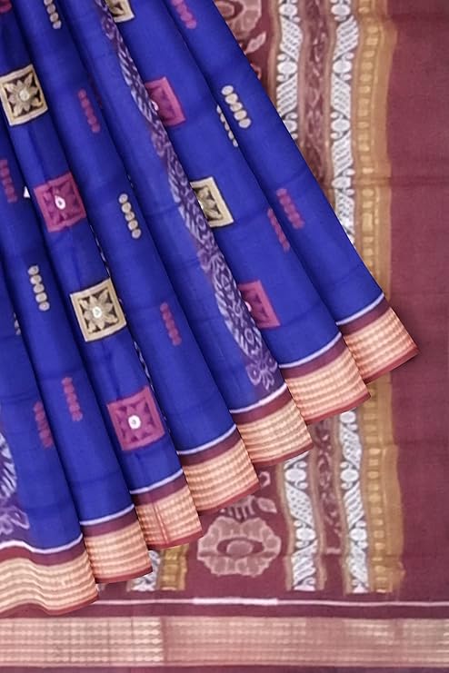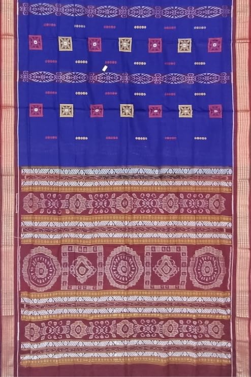 A distinctive feature of the Sambalpuri saree is the design of the border and pallu (the loose end of the saree). While the body of the saree features an intricate pattern, the border typically features bold, solid designs. The pallu, on the other hand, is often more elaborate and detailed, showcasing the most complex patterns. The pallu may feature symbols such as peacock motifsfloral vines, or geometrical designs.